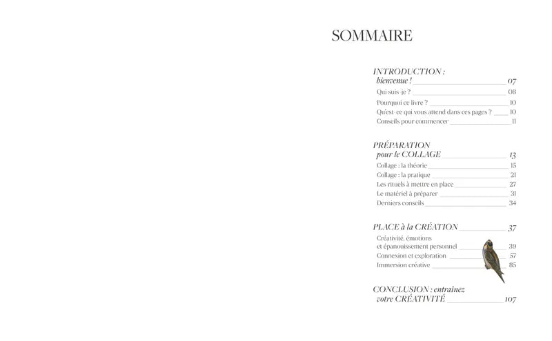 Vous trouverez dans ce livre une dizaine de collages à réaliser : autoportrait, visualisation, compositions diverses, ainsi que l’interprétation de ces sujets par l’auteure. Découvrez les rituels à mettre en place et les techniques qui vous aideront à sélectionner les éléments visuels et équilibrer votre composition, pour optimiser votre pratique du collage. Quelques magazines, une paire de ciseaux et de la colle, et vous êtes prêt à vous lancer !