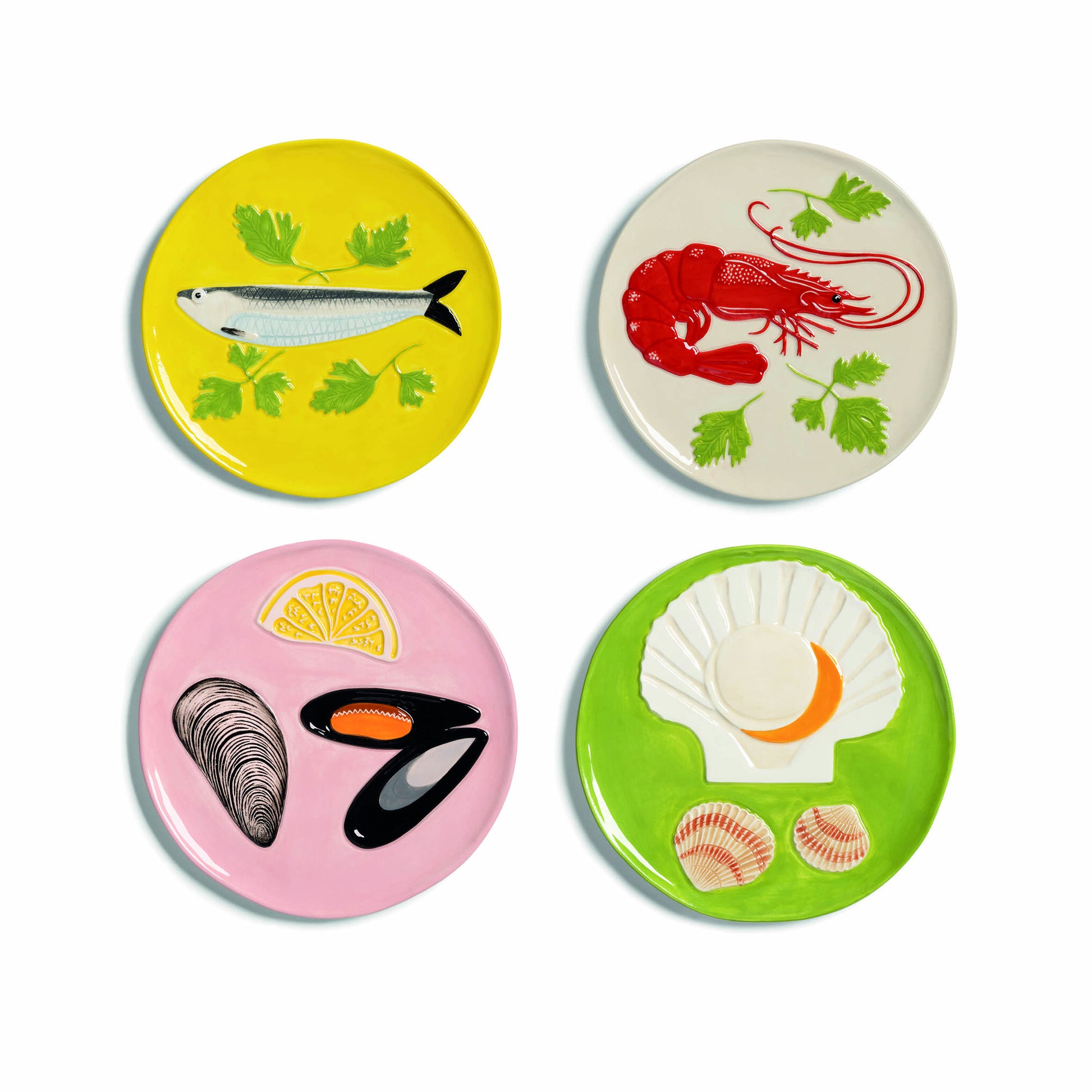 L'ensemble coloré de 4 assiettes De la Mer vous transporte dans le monde sous-marin. Les assiettes sont finies avec un superbe imprimé peint à la main et des détails subtils donnant un aspect luxueux. Parfait pour votre gâteau préféré ou comme décoration de table.